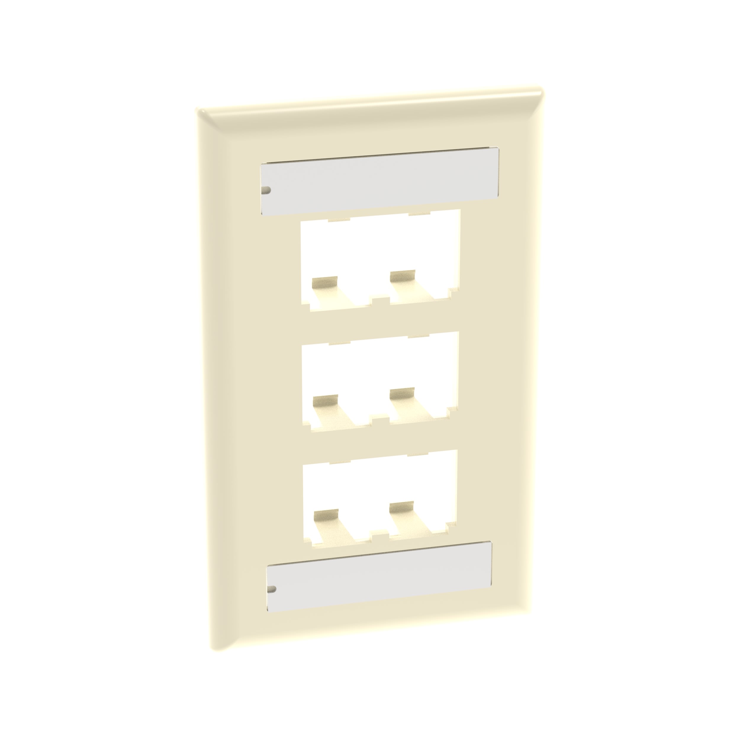 The Mini-Com® Classic Series Faceplate accepts six Mini-Com Modules. The faceplate is single gang and mounts to a NEMA standard single gang opening. The faceplate includes a label pocket for easy identification and is electric ivory.