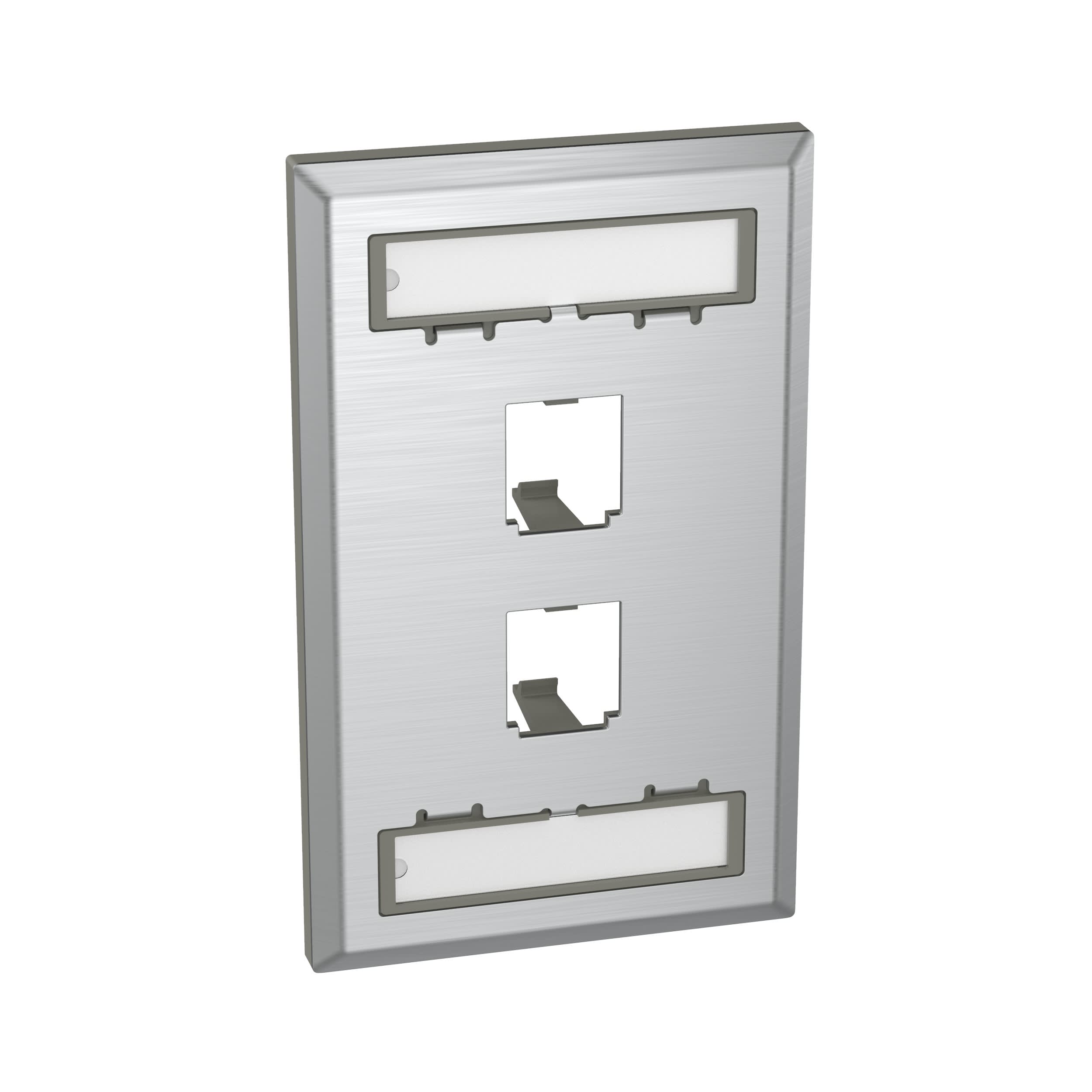 The Mini-Com® Stainless Steel Faceplate accepts two Mini-Com Modules. The faceplate is single gang and mounts to a NEMA standard single gang opening. The faceplate includes a label pocket for easy identification and is made of impact resistant material to support installations in high traffic areas.