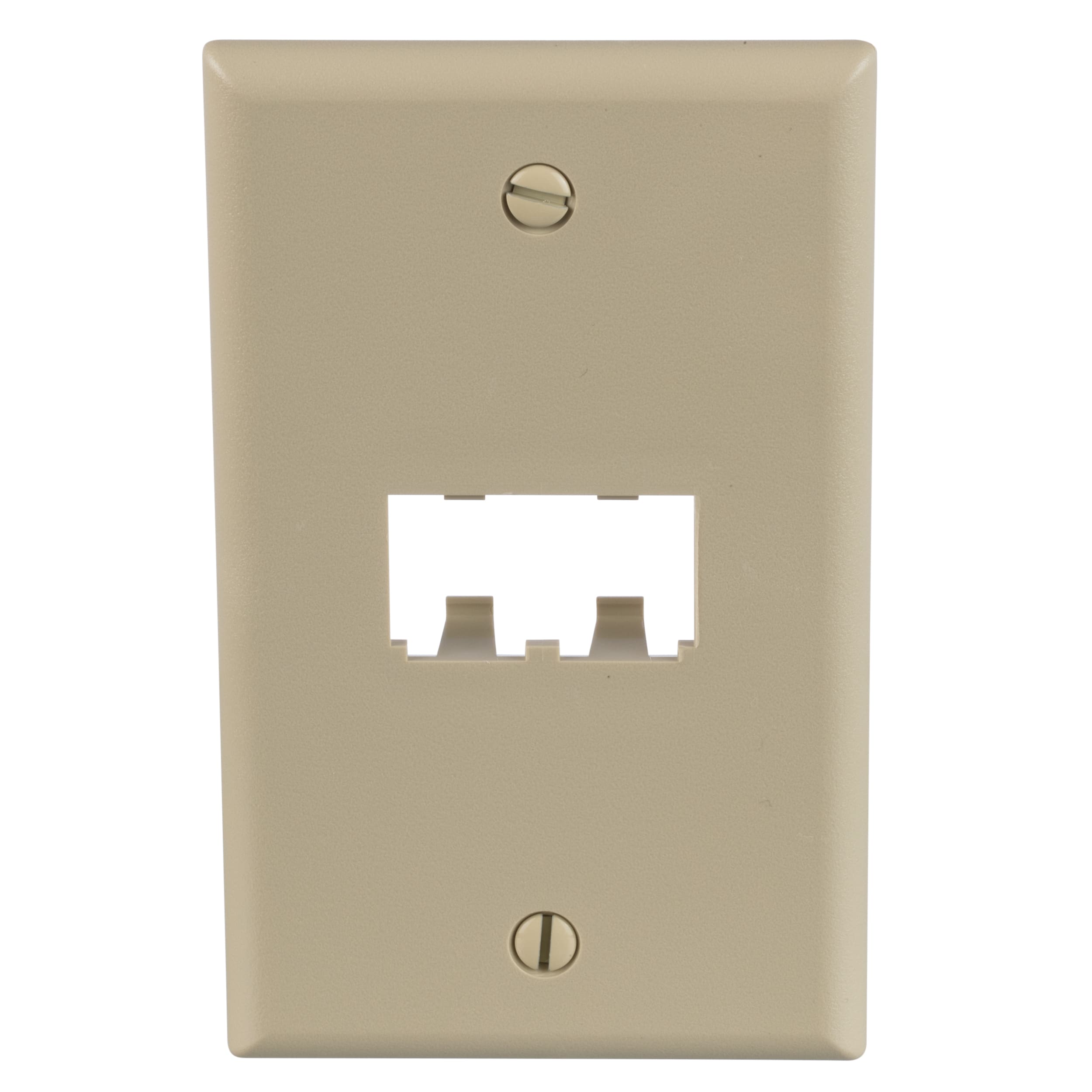The Mini-Com® Classic Series Faceplate accepts two Mini-Com Modules. The faceplate is single gang and mounts to a NEMA standard single gang opening. The faceplate can be identified with an adhesive label and is electric ivory.