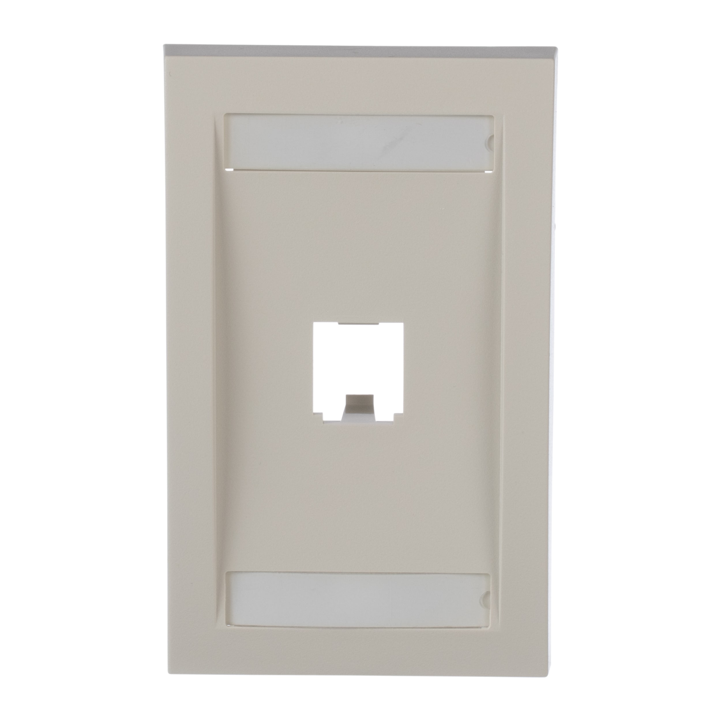 The Mini-Com® Executive Series Faceplate accepts one Mini-Com Module. The faceplate is single gang and mounts to a NEMA standard single gang opening. The faceplate includes a raised rail design on the outer edge of the frame, has a label pocket for easy identification, and is off white.