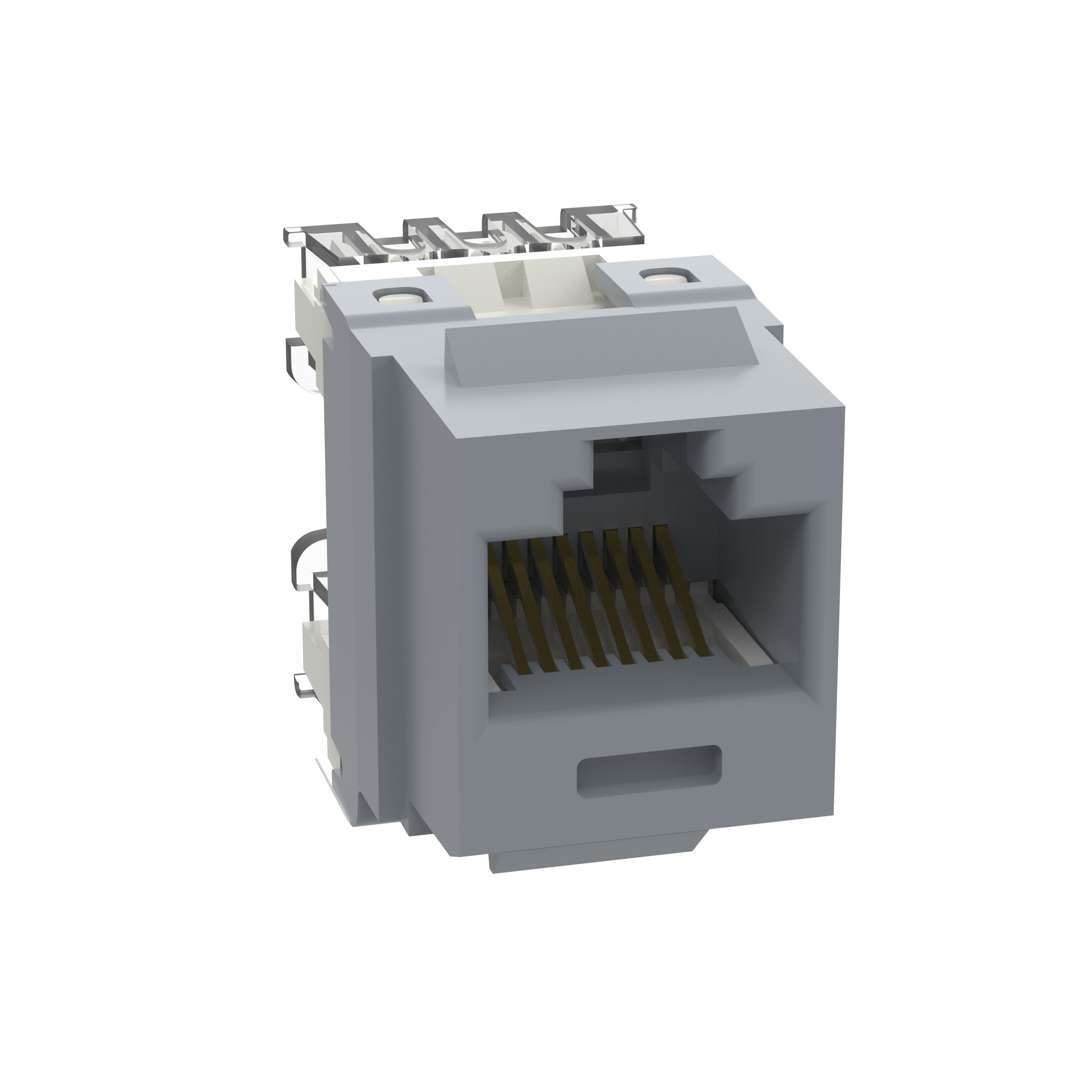 The NetKey® Cat 6 UTP RJ45 Punchdown Keystone Jack Module is designed to terminate 4-pair, 22-26 AWG twisted pair cable. Each module is 100% factory tested to exceed industry standard performance requirements. Contacts are plated with 50 microinches of gold for superior performance. Jacks are individually serialized, and are compatible with keystone interfaces such as NetKey® Faceplates, Modular Patch Panels, and Surface Mount Boxes. The module is international gray.