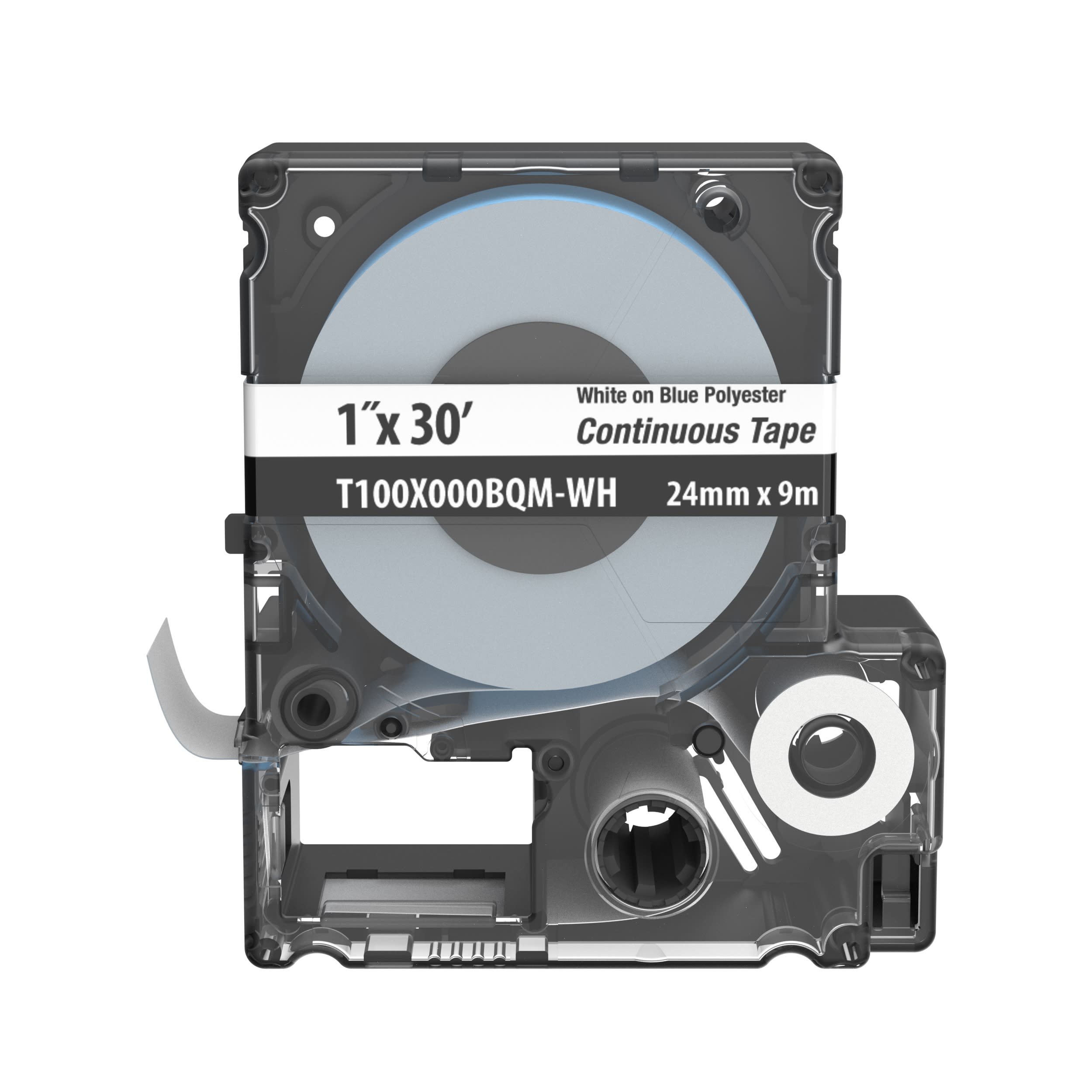 The T100X000BQM-WH Continuous Tape Cassette includes both label material and ribbon for easy changeover. Print custom pipe markers, voltage markers, signs, bin markers, and network identification labels on demand. For flat label applications only. For use with the MP300, MP200, and MP100 printers. Polyester. 1.0'' x 30' (25.4 mm x 9.1 m). Color White on Light Blue. 1 cassette per package.