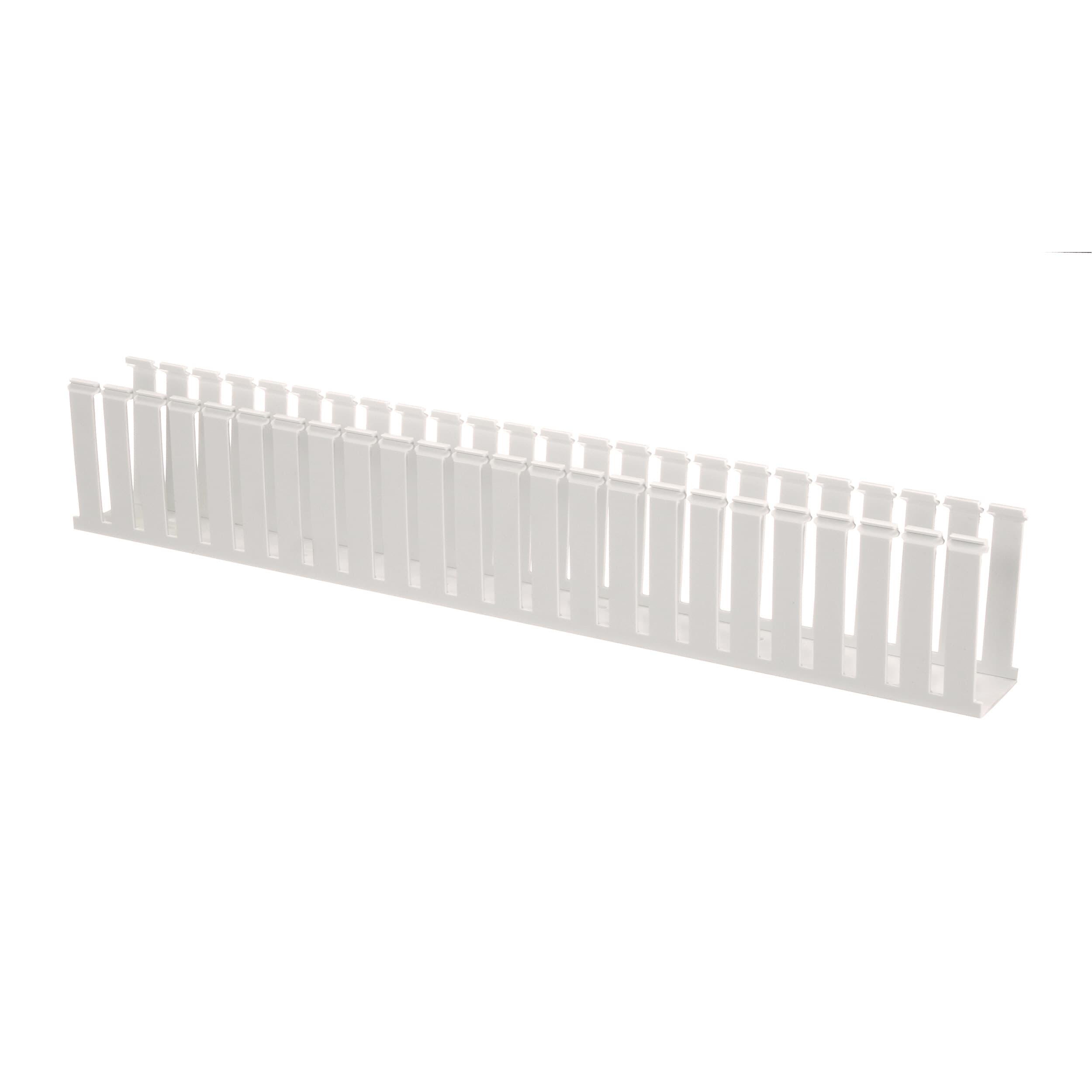 The G2X4WH6 Panduct Lead-Free PVC Wide Slot Wiring Duct feature a wide slot/finger design that provides greater sidewall rigidity and is suitable with a range of wire bundle sizes. UL 94 flame class of V-0 with a UL recognized continuous-use temperature up to 122°F (50°C). Mounting holes provided. Lead-free PVC. 4.1'' x 2.25'' (104.1 mm x 57.2 mm) and 6' (1.8 m) long. Cover sold separately. Color White. 6 per package.