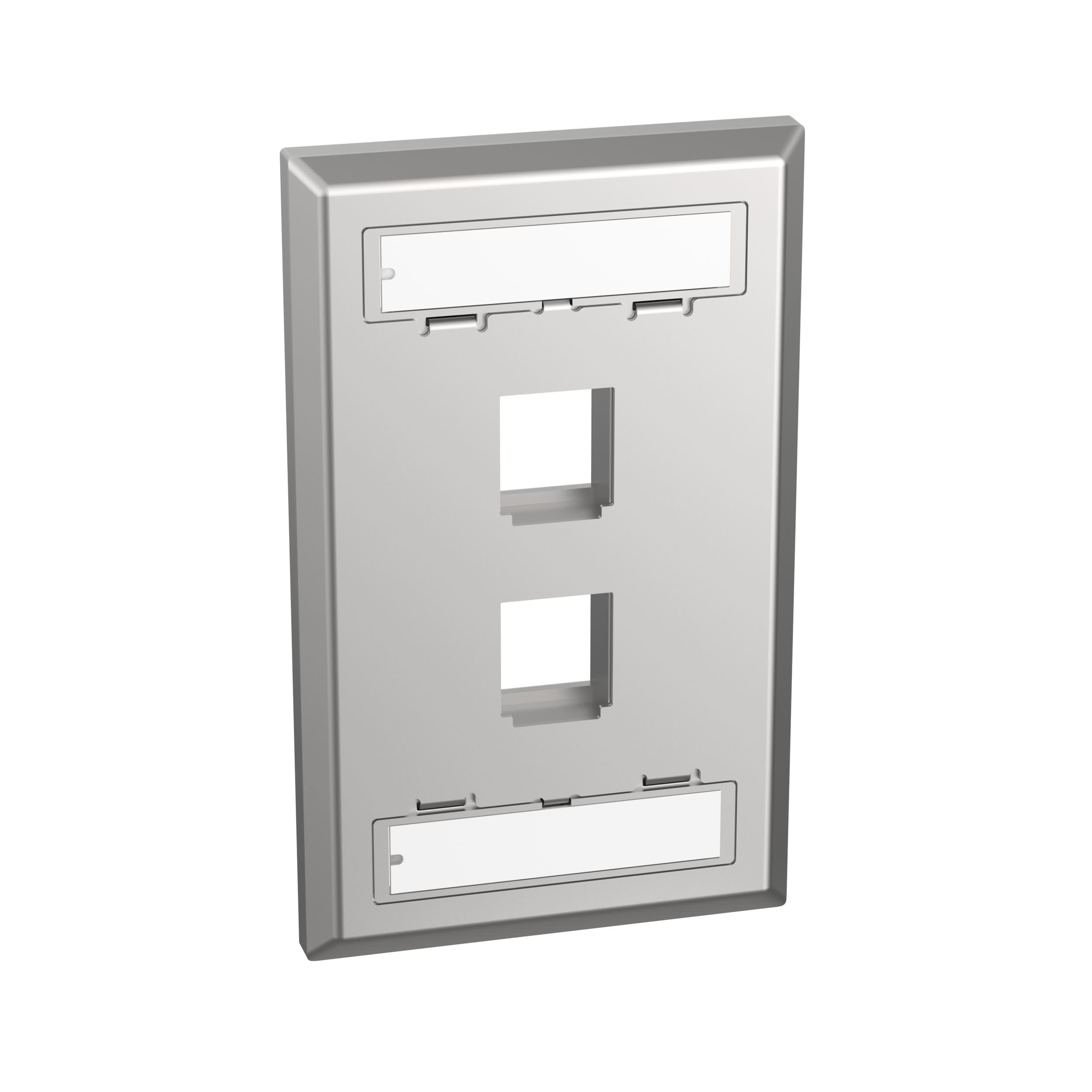 The NetKey® Faceplate accepts two keystone modules. The faceplate is single gang, includes label and label cover, and is stainless steel.