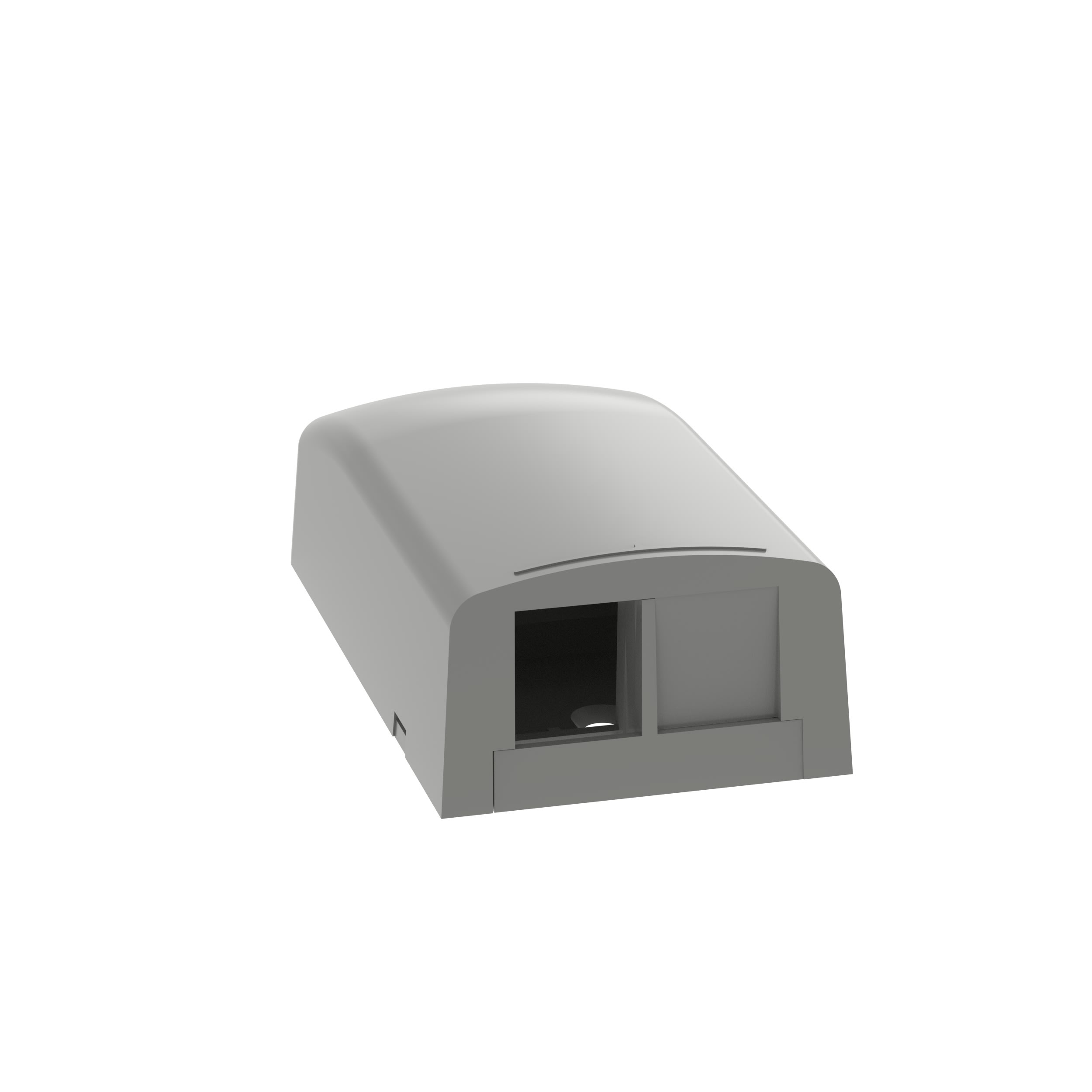 The NetKey® Surface Mount Box is plenum rated and accepts two keystone modules. The box offers a variety of mounting options using adhesive tape, screws, or optional magnet. The box can be identified with an adhesive label and is international gray.
