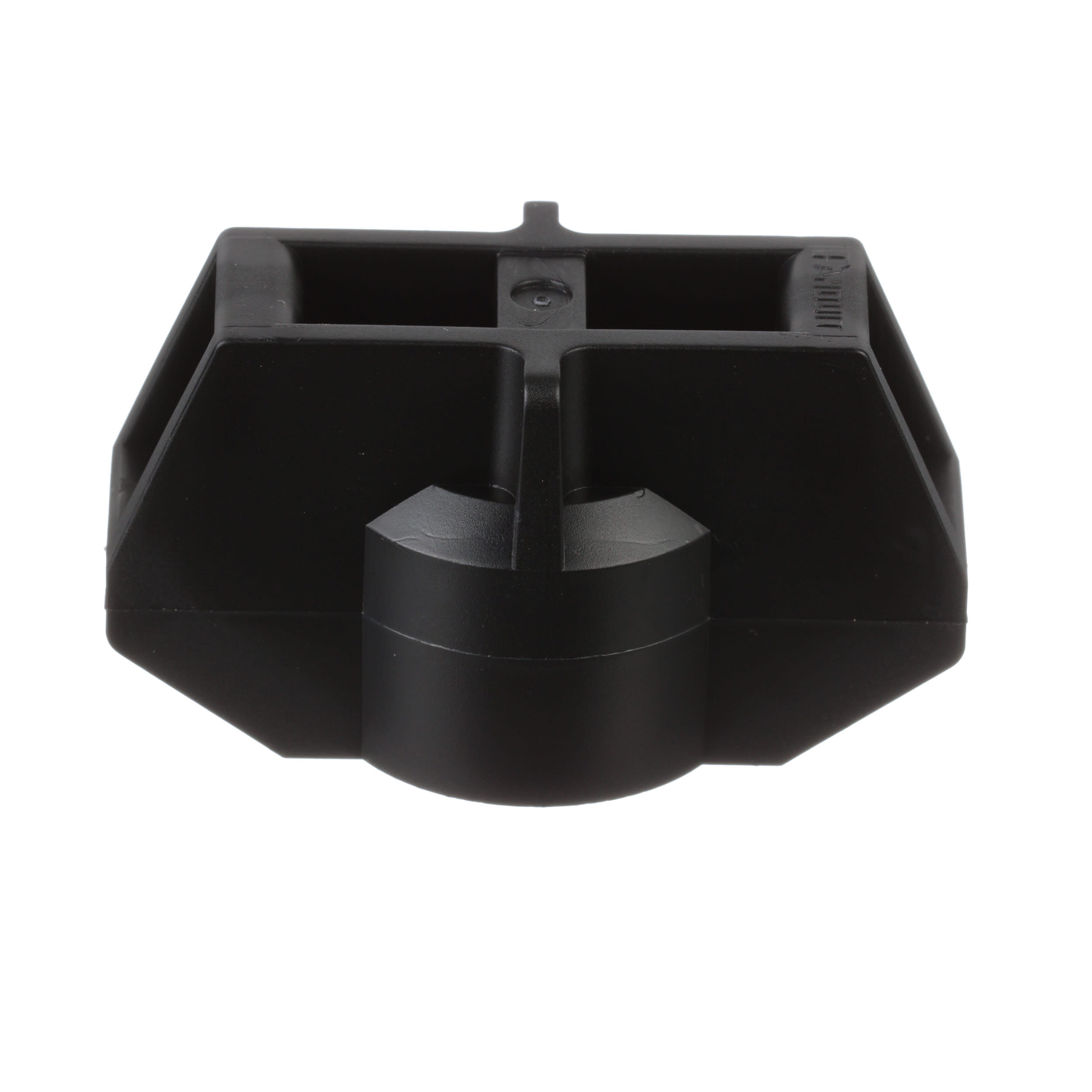 The cable tie mount in black is installed onto a 0.38'' (9.7mm) stud. It is made of impact-modified weather-resistant nylon 6.6, which increases mechanical strength, heat and wear resistance, and stiffness in outdoor environments. It comes in packages of 500.
