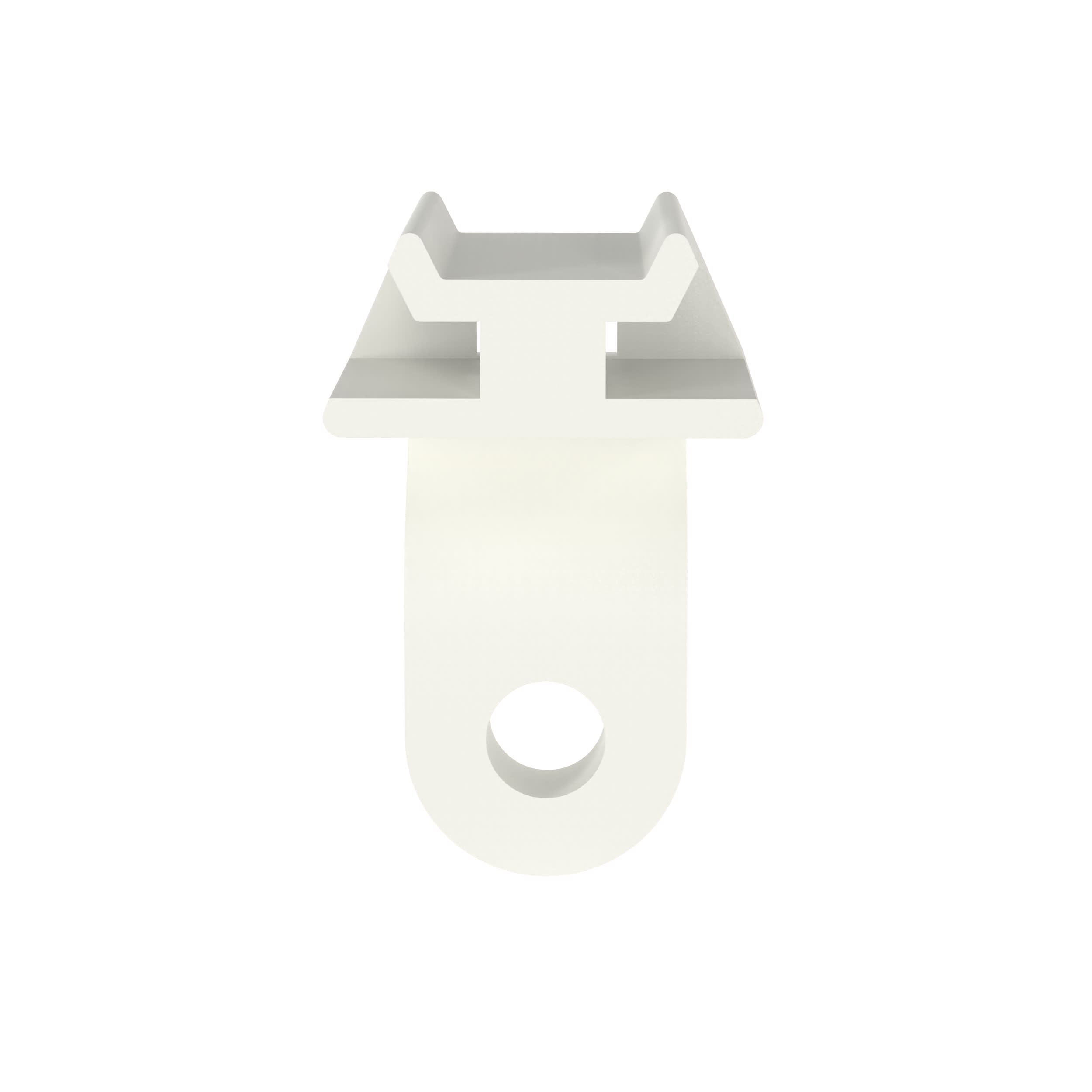 The lightening hole cable tie mount with a 0.13'' (3.81 mm) diameter hole is mounted using a #5 (M3) screw. It is designed for indoor use, made of Nylon 6.6, and comes in packages of 500.