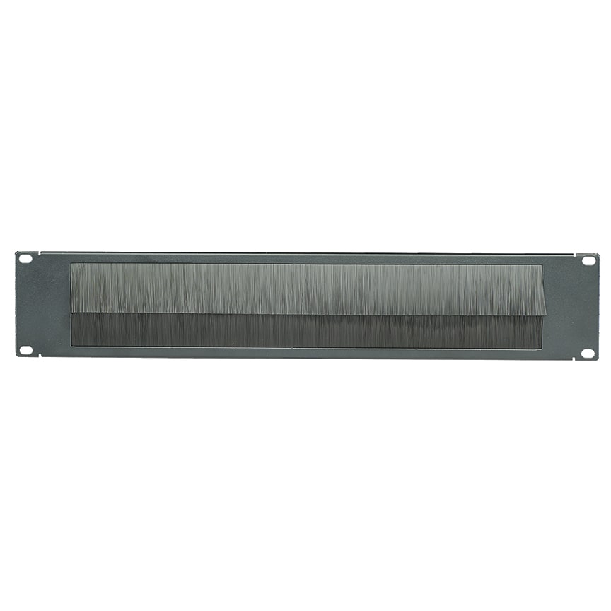 The Brush Seal Blanking Panel controls air flow but also allows front-to-back cables to pass through the nylon brushes. The blanking panel is 2RU and black in color.
