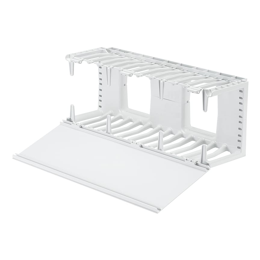 The NetManager™ High Capacity Horizontal Cable Manager cost-effectively organizes and protects copper and fiber network cabling in any standard EIA 19 inch (483mm) rack or cabinet. Large front finger openings easily accommodate Cat 6 and 6A cables, reducing installation time and maintenance costs. The single-sided manager is 3 RU and has a hinged front cover only. The manager is white.