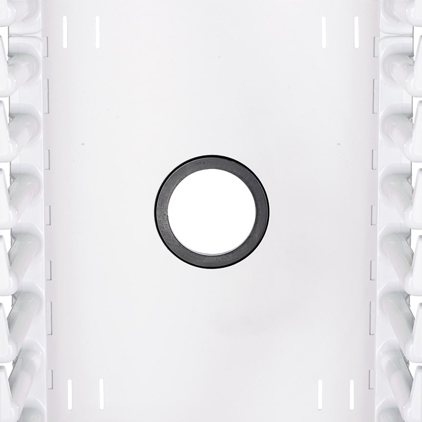 The PatchRunner™ 2 Vertical Cable Manager Pass-Through Hole Grommet protects cable as it passes from front to back through the manager backbone. The rubber grommet easily installs in the pass-through hole to provide proper bend radius and ensure cable performance. Each part number contain five grommets, so it can be used with 45 RU or 52 RU managers. The grommets are black and are sized for 3 inch diameter pass-through holes.