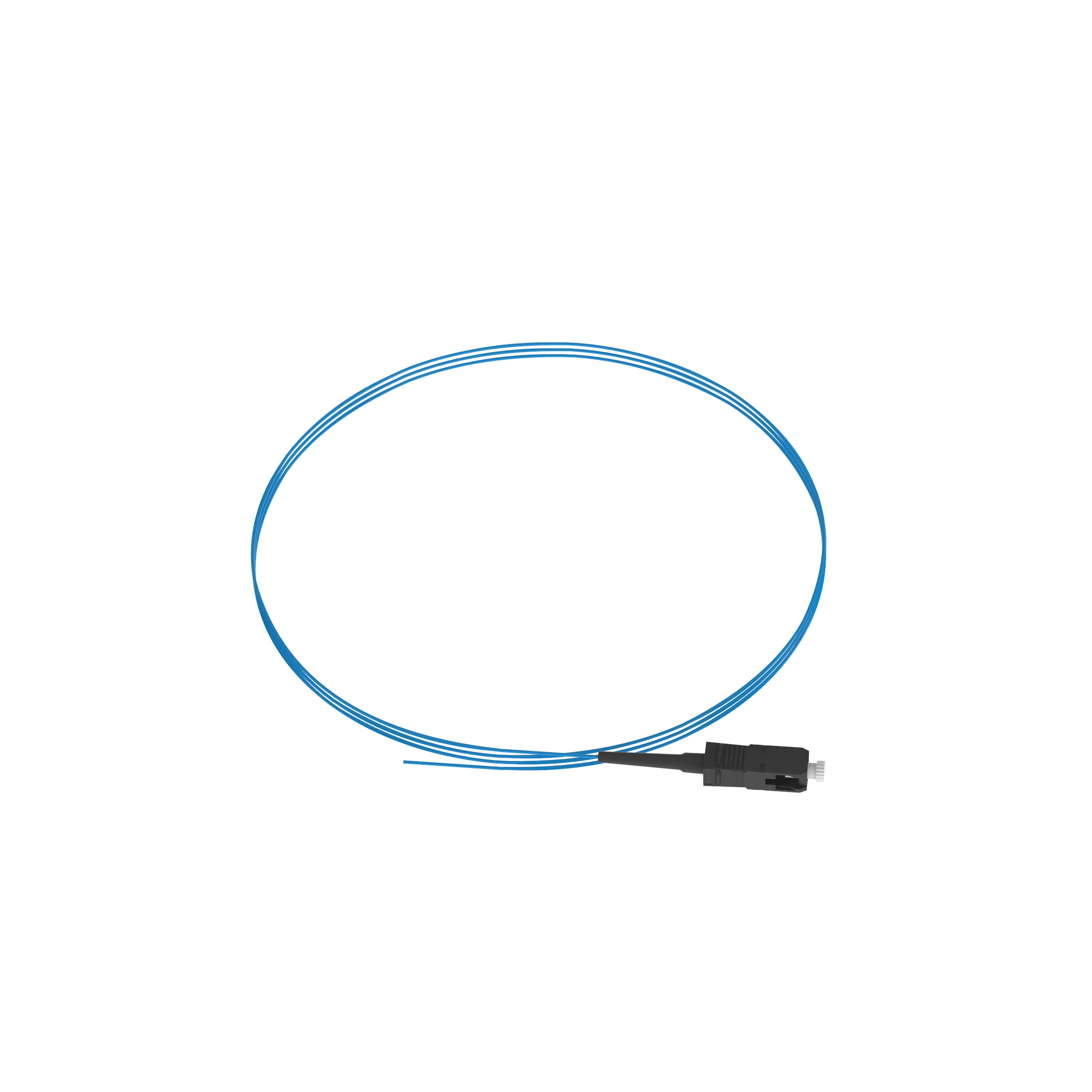 The simplex fiber patch cord is OM3 900µm buffered fiber with no jacket. It features SC to pigtail connectors. It has standard insertion loss, is aqua, and is 3 meters in length.