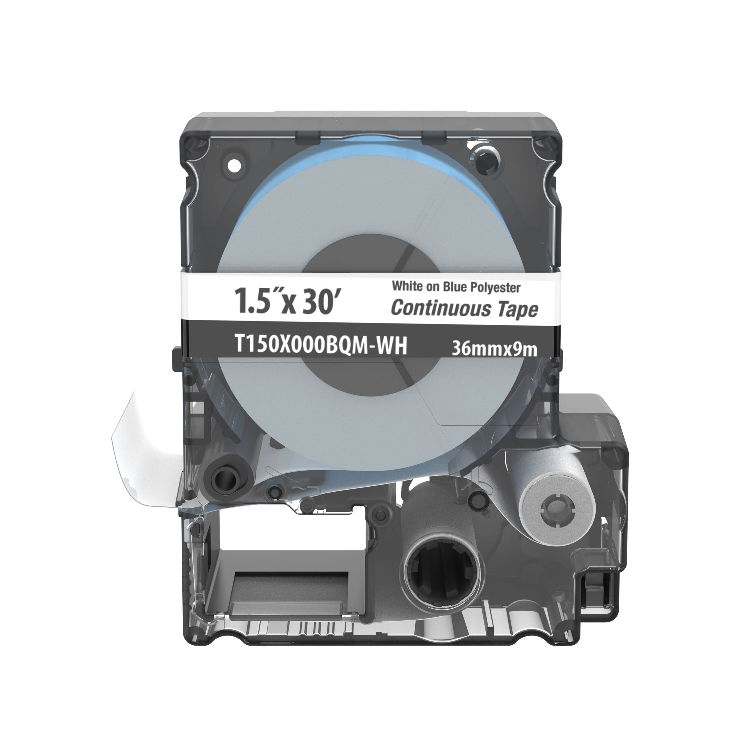 The T150X000BQM-WH Continuous Tape Cassette includes both label material and ribbon for easy changeover. Print custom pipe markers, voltage markers, signs, bin markers, and network identification labels on demand. For flat label applications only. For use with the MP300 printer. Polyester. 1.5'' x 30' (36 mm x 9.1 m). Color White on Light Blue. 1 cassette per package.