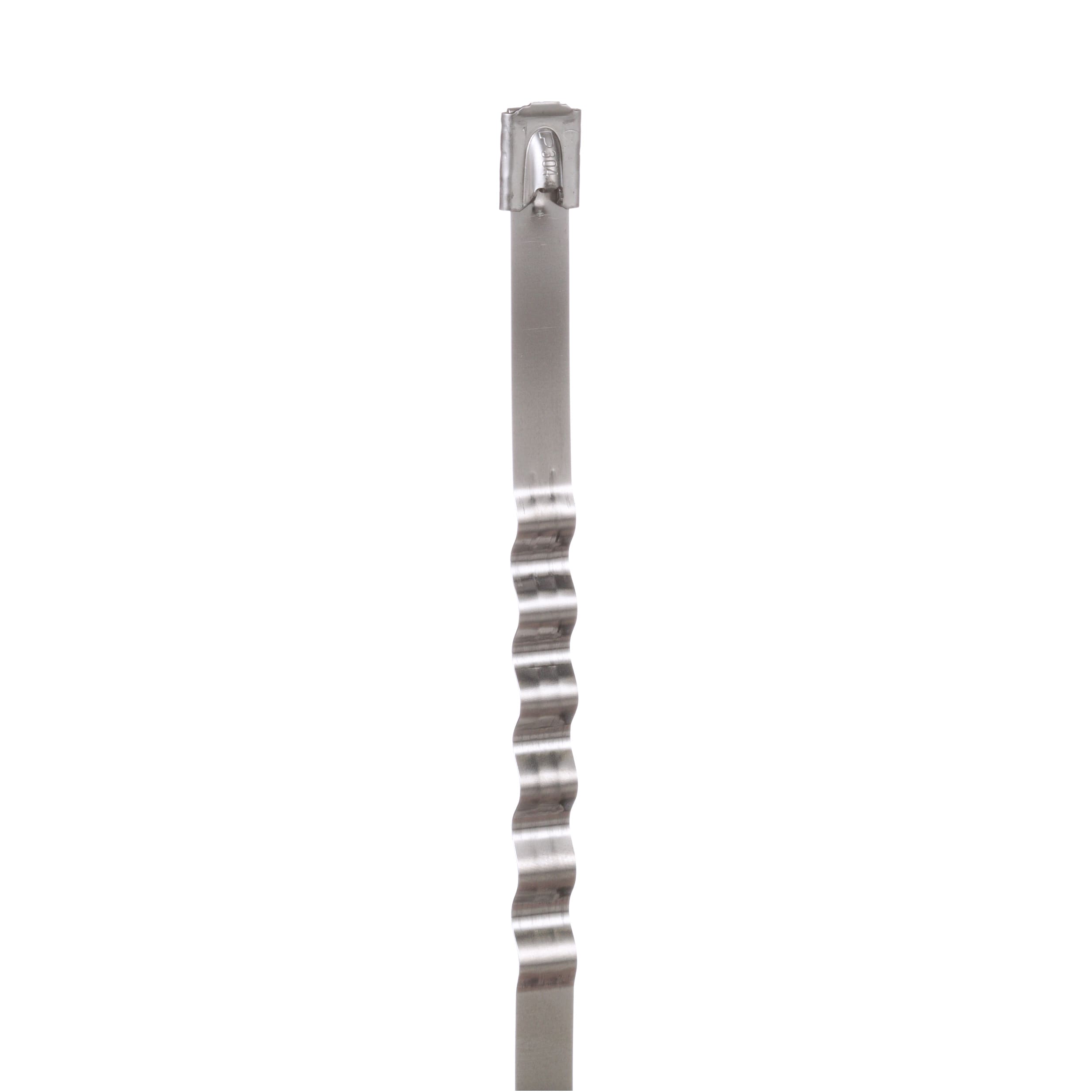 MLT Wave Tie, 304 Stainless Steel, Light-Heavy Cross Section, 14.3 Inches (362.0mm) Length 0.010 Inch (0.25mm) Thickness. The unique wave-form spring maintains greater installed tension on non-resilient objects. Loop tensile strength of 200 pounds provides superior strength for increased performance and reliability on most bundling applications. Type 304 and 316 stainless steel offer excellent resistance to temperature extremes, corrosion, weather and ultraviolet radiation for use in harsh environments. Still incorporates all the features of the original Metal Locking Tie (MLT). Minimum bundle diameter 2.0 inches (50.0mm).