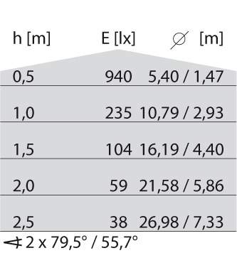 Mantenimento del flusso luminoso,durata operativa media di 50.000 ore: