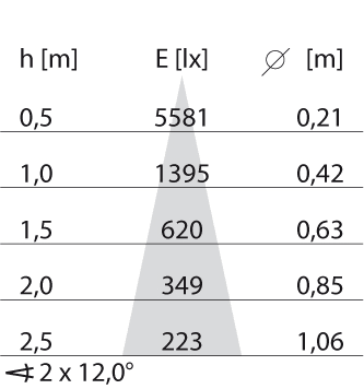 Mantenimento lumen alla vita utile mediana di 35.000 ore a 25 ° C amb: