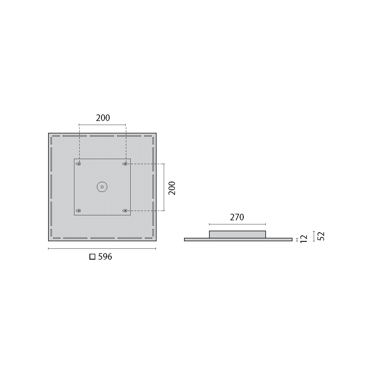 Apparecchio a plafone LED quadrata per interni composta da: Corpo in alluminio estruso, verniciato. Tecnologia Sidelight LED e ottica di orientamento in tecnopolimero per una distribuzione luminosa omogenea sull'intera area diffondente. Diffusione luminosa diretta e leggera retroilluminazione. Indice di resa cromatica > 80. Tolleranza cromatica (MacAdam) = 3 SDCM. Varianti DALI dimmerabili anche via TouchDIM. Completo di alimentatore elettronico. Dimmerabile DALI.