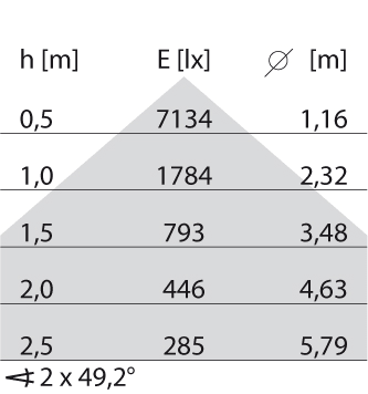 Mantenimento del flusso luminoso,durata operativa media di 50.000 ore: