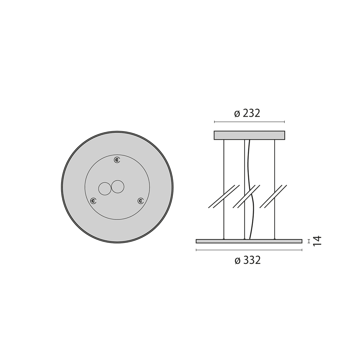 Apparecchio LED tondo a sospensione per interni, composta da: Alloggiamento in lamiera d'acciaio e alluminio pressofuso verniciato a polvere. L'apparecchio è disponibile con ottiche diverse: Diffusore a microprismi per una diffusione omogenea, un abbagliamento ridotto e un'alta uniformità. Copertura del diffusore bianco opale per una diffusione ottimale della luce e un'elevata uniformità. Tecnologia Sidelight LED e ottica di orientamento in tecnopolimero per una distribuzione luminosa omogenea sull'intera area diffondente. Diffusione luminosa diretta o diretta oppure diretta ed indiretta. Antiabbagliamento conforme alla norma EN 12464-1 (versioni con microprisma). Indice di resa cromatica > 80. Tolleranza cromatica (MacAdam) ≤ 3 SDCM. Varianti DALI dimmerabili anche via TouchDIM. Completo di sospensione in cavo d’acciaio (1,5 m), cavo di alimentazione trasparente e rosone. Completo di alimentatore elettronico.