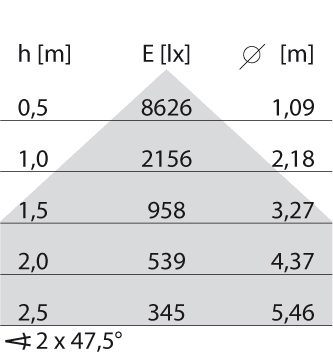 Mantenimento del flusso luminoso,durata operativa media di 50.000 ore: