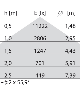 Mantenimento del flusso luminoso,durata operativa media di 50.000 ore: