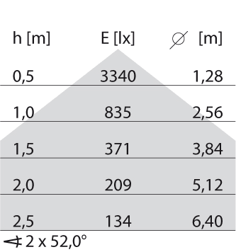 Mantenimento del flusso luminoso,durata operativa media di 50.000 ore: