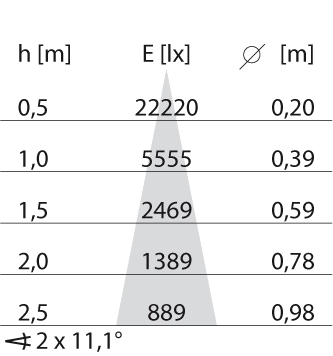 Mantenimento lumen alla vita utile mediana di 35.000 ore a 25 ° C amb: