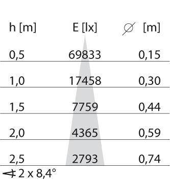 Mantenimento lumen alla vita utile mediana di 35.000 ore a 25 ° C amb: