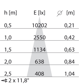 Mantenimento lumen alla vita utile mediana di 35.000 ore a 25 ° C amb: