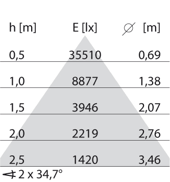 Mantenimento lumen alla vita utile mediana di 35.000 ore a 25 ° C amb: