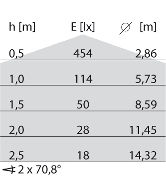 Mantenimento del flusso luminoso,durata operativa media di 50.000 ore: