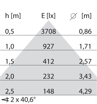 Mantenimento del flusso luminoso,durata operativa media di 50.000 ore: