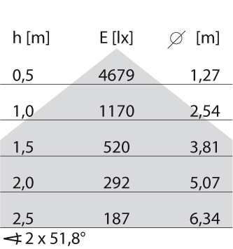 Mantenimento del flusso luminoso,durata operativa media di 50.000 ore: