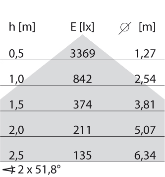 Mantenimento del flusso luminoso,durata operativa media di 50.000 ore: