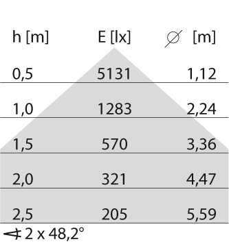 Mantenimento del flusso luminoso,durata operativa media di 50.000 ore: