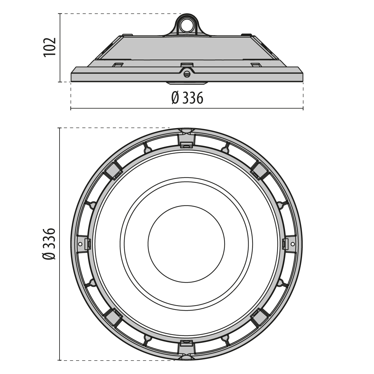 PERFORMANCE IN LIGHTING - LED industriali dimmerabili 200W Ottica circolare extra diffondente 4000K A+ 1-10V 840 BK-RAL9005 3111276