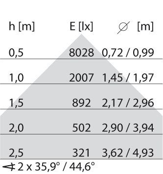 Mantenimento lumen alla vita utile mediana di 35.000 ore a 25 ° C amb: