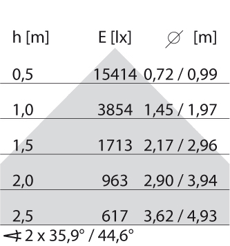 Mantenimento lumen alla vita utile mediana di 35.000 ore a 25 ° C amb: