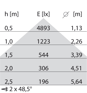 Mantenimento del flusso luminoso,durata operativa media di 50.000 ore: