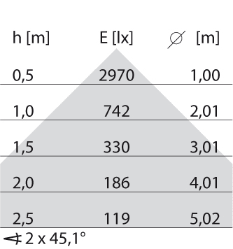 Mantenimento del flusso luminoso,durata operativa media di 50.000 ore: