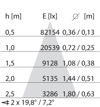 Mantenimento del flusso luminoso,durata operativa media di 50.000 ore: