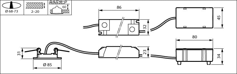 PHILIPS LIGHTING - CoreLine SlimDownlight, 6.5 W, D68 mm, 650 lm, 4000 K, Opale, IP20/44, DN145B LED6S/840 PSU II WH. 33946799