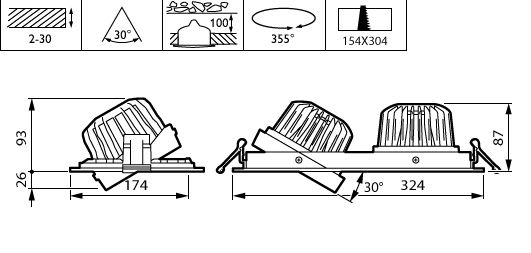 PHILIPS LIGHTING - GreenSpace Accent Gridlight Gen2, 2 spots (*flux value for 1 spot only), 45 W, C/O 154x304 mm, 3000 lm, 3000 K, IP20 GD352B 27S/830 PSU-E WB WH.