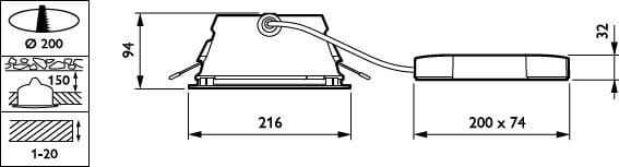 PHILIPS LIGHTING - GreenSpace Downlight 22.5 W D200 mm 2800 lm 3000 K UGR19 Riflettore speculare C IP20 ELP3h DN471B LED30S/830 PSU-E C ELP3 WH P