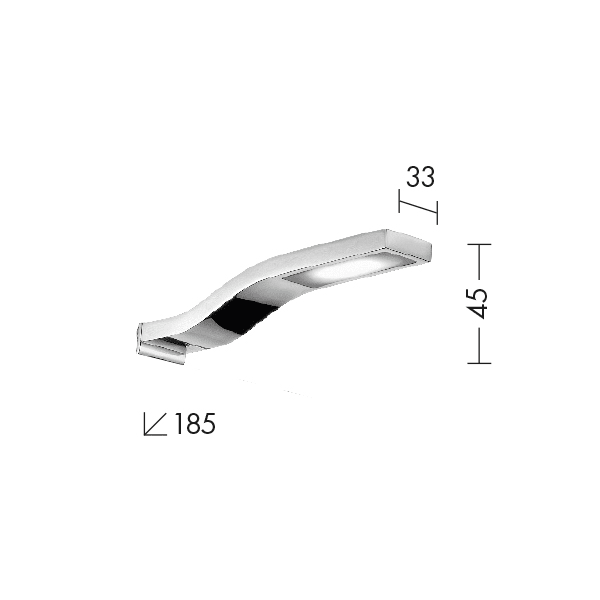 Lampada a LED (3000K) singola o doppia, predisposta per attacco a piastra" con corpo in metallo cromato. Corredata di alimentatore esterno (da incassare nella struttura dello specchio o in remoto). D eve essere montata direttamente sugli specchi con telaio a filo."