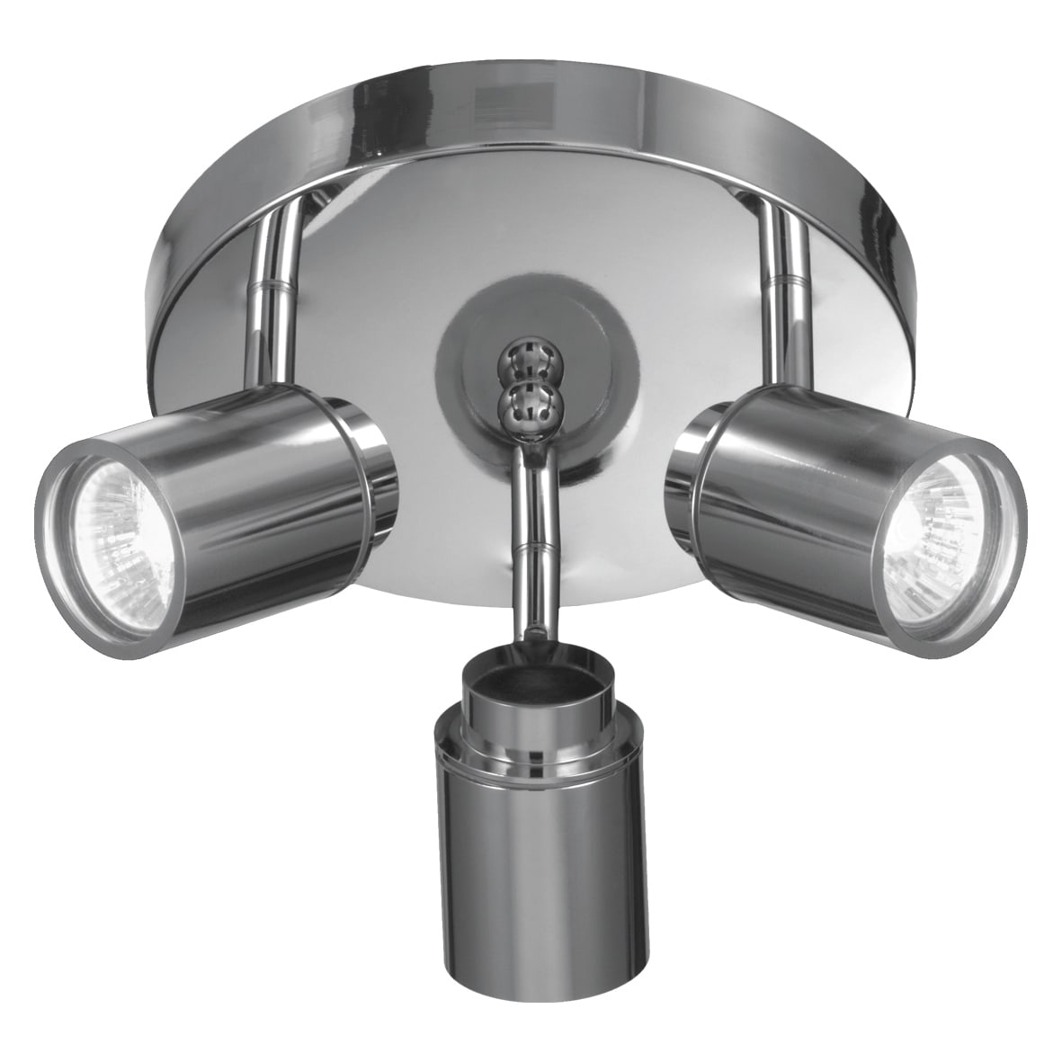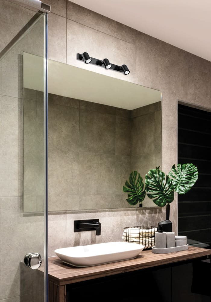 Lampada da soffitto e da parete in metallo cromato o in finitura nera con spot orientabili di 355? rispetto all'asse verticale e rispetto all'asse orizzontale di 90? verso l'alto. Vetro in cristallo temperato a copertura della fonte luminosa, attacco GU10 che consente di montare lampadina LED. Prodotto proposto nella versione singola, da due o da t re elementi.