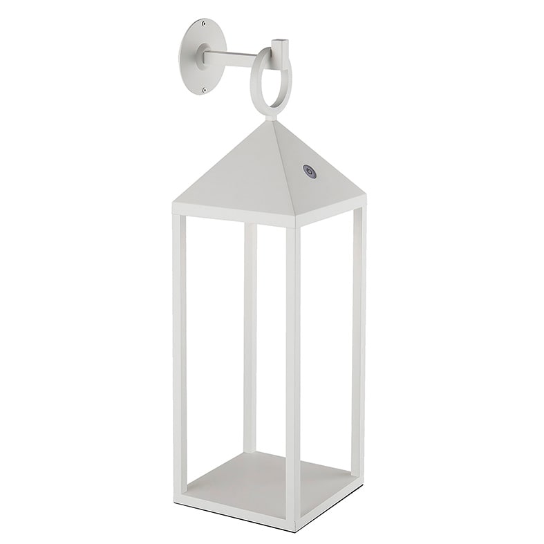 Lampada da tavolo a LED (2700K), portatile e ricaricabile, ideale per illuminare terrazze e giardini, ma perché no, anche per rallegrare il tuo pic-nic al parco. Una lampada senza fili, che ti segue ovunque tu voglia andare. Struttura in pressofusione di alluminio verniciato con pretrattamento per uso da esterno (IP54). Accensione con interruttore touch dimmer e ricarica a contatto tramite l'apposita base, durata della batteria 12 ore. Disponibile in tre colori (bianco, antracite e corten) e in tre altezze. Possibilità di installazione a sospensione tramite cavo e corda in finitura ecrù (5 mt) e a parete tramite gancio da ordinare come accessorio.