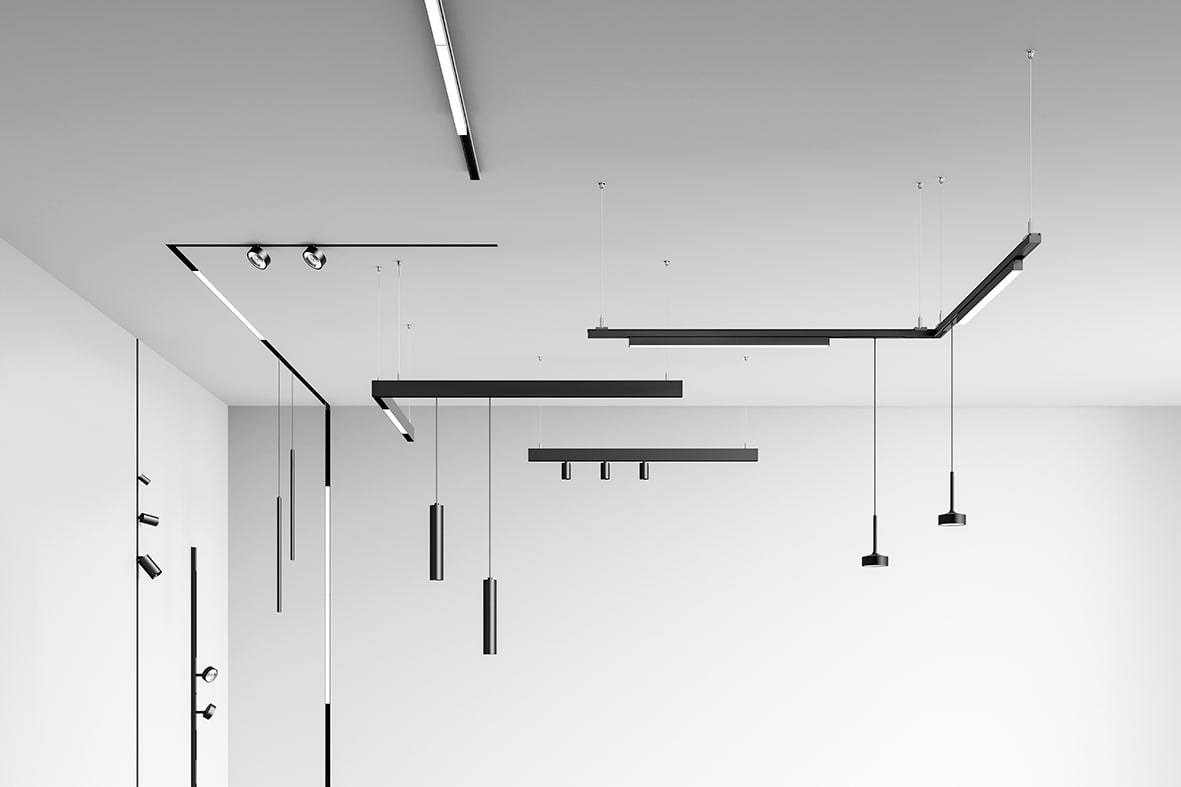 Binario a 4 conduttori 48V con sezione quadrata applicabile ad incasso rasato, a parete, plafone e a sospensione con la possibilità di realizzare una doppia emissione di luce per un'illuminazione ad alte prestazioni. Da completare con proiettori YAKI SPOT e HOLE. Sospensioni HOLE, MINI AXIOM e AXIOM. Elemento LED lineare YAKI LINEARE.