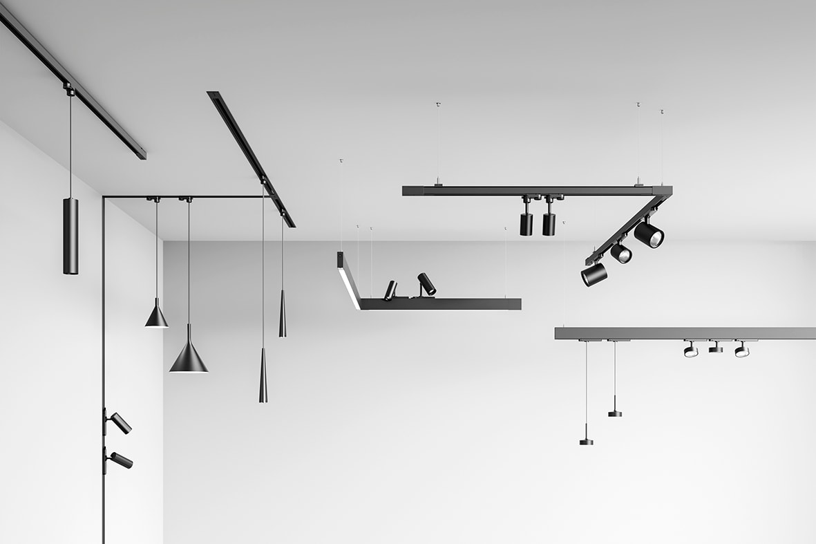 Binario trifase e trifase DALI a tensione di rete (230/440V-16A), a tripla accensione, con sezione quadrata. Applicabile ad incasso, a parete, plafone e a sospensione con la possibilità di realizzare una doppia emissione di luce per un'illuminazione ad alte prestazioni. Da completare con proiettori MANUKA, HOLE, HEDIN e MAAR. Sospensioni HOLE, AXIOM, CORVINA e ASIA.
