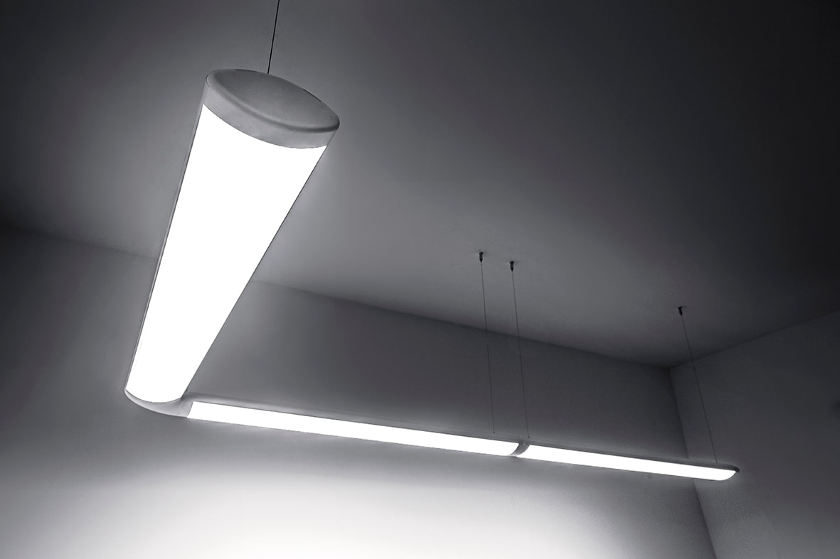 Sistema lineare LED o con attacco G13 solo per tubi LED a luce diretta, per installazione a soffitto (con kit attacco a plafone), a sospensione (con kit sospensione e rosone) o a sistema in fila continua (con giunto lineare e angolare, fino a max 1500W). Struttura in alluminio estruso verniciato con polveri epossidiche in tre finiture (bianco e nero). Disponibile in diverse misure e relative potenze, versione LED in due temperature colore (3000K e 4000K), con alimentatore a bordo. Apparecchio da completare con kit testate terminali e schermi da ordinare separatamente.