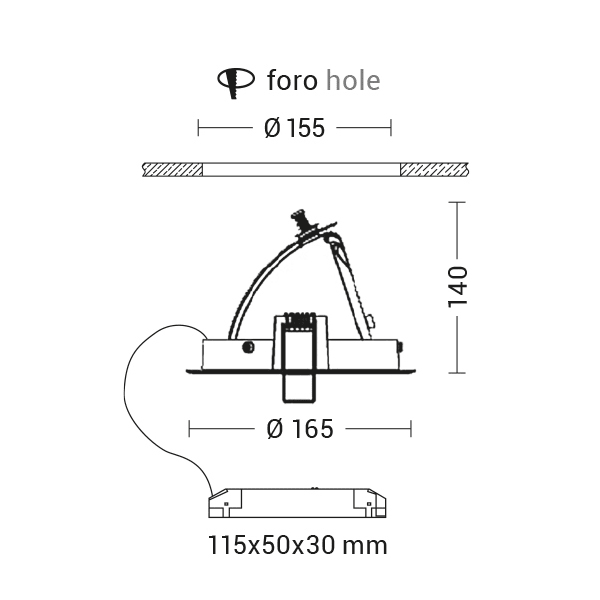 ROSSINI ILLUMINAZIONE - DOWNLIGHT BIANCO LED 30W 36° IP20 3000K CRI90 LOO105